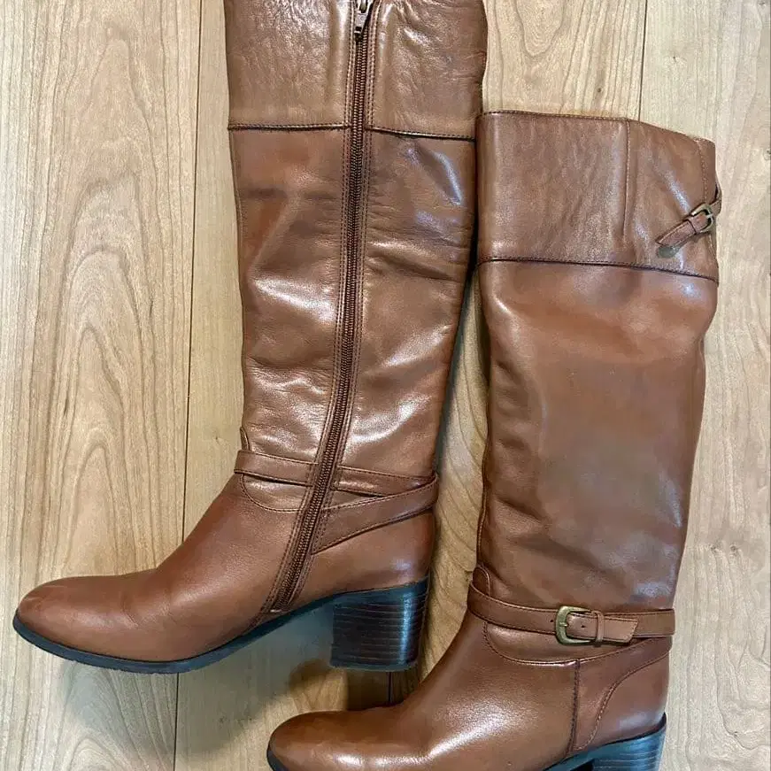 브라운 가죽 롱 부츠
