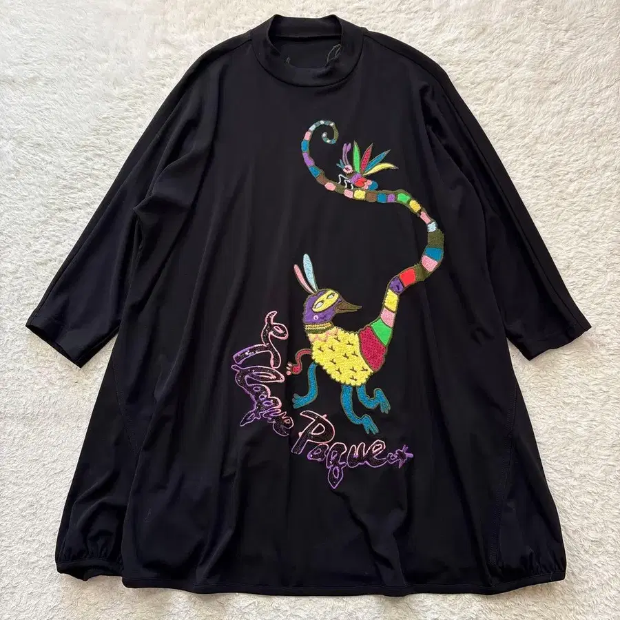 토쿠코 프리미어볼 자수 장식 칸칸 소재 플레어 튜닉 블랙