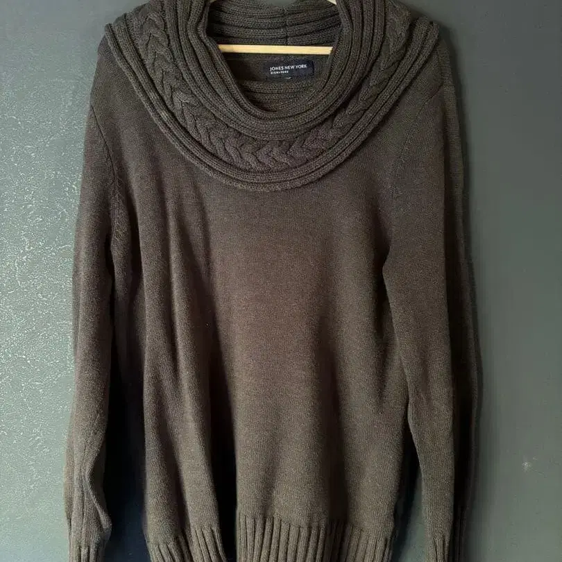 그레이 니트 스웨터 카울넥 케이블 짜임