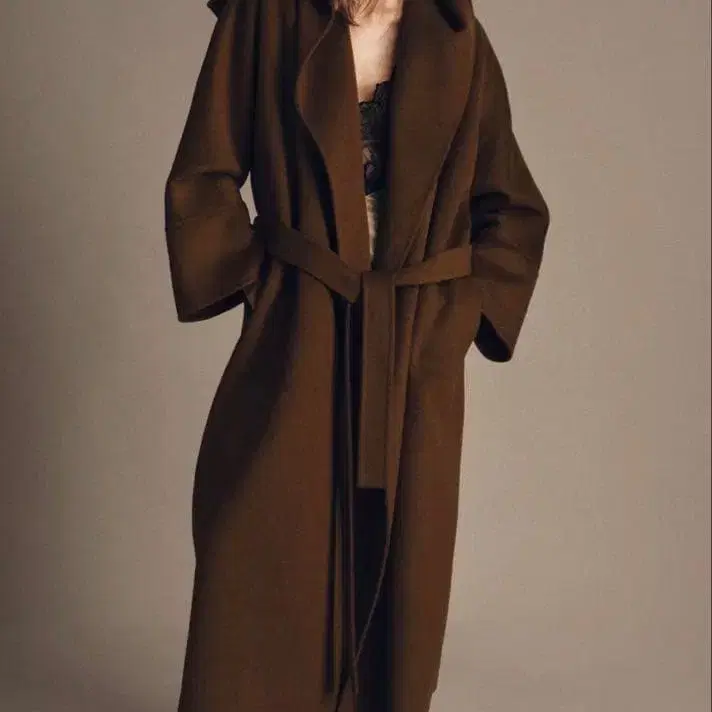 ZARA 브라운 후드 부착 롱 코트 S(JP7-9)