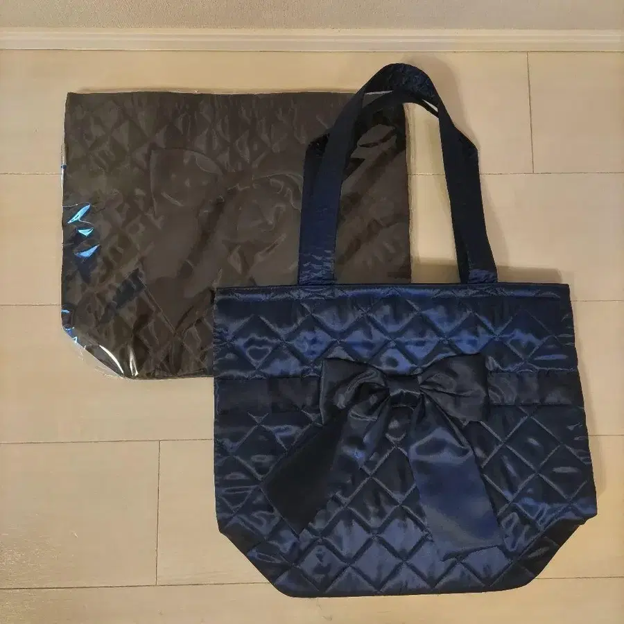 나라야 토트백 새틴 블랙&네이비