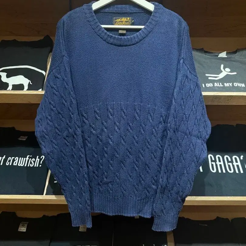90s 블랙택 Eddie Bauer 케이블 절개 코튼 니트 네이비
