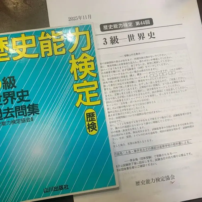 역사 능력 검정 3급 세계사 기출문제집 야마카와 출판사