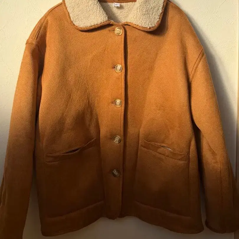 카멜 보아 옷깃 무스탕 코트