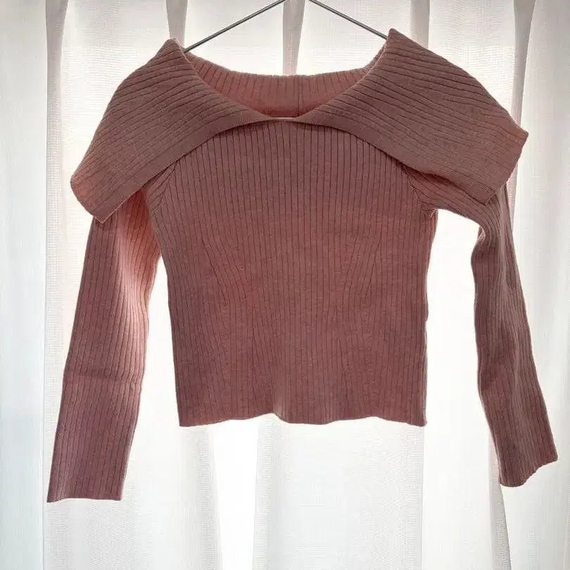 PEACH JOHN 피치 존 오프숄더 리브 니트 핑크