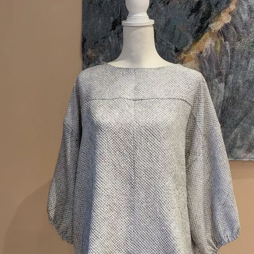 순수 실크 총 시보리 블랙 x 화이트 기모노 리메이크 풀오버 상의