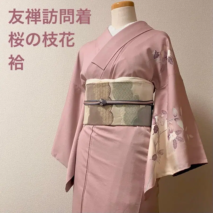 벚꽃 패턴 유젠 호몬기 이중 기모노 포멀 기모노 핑크