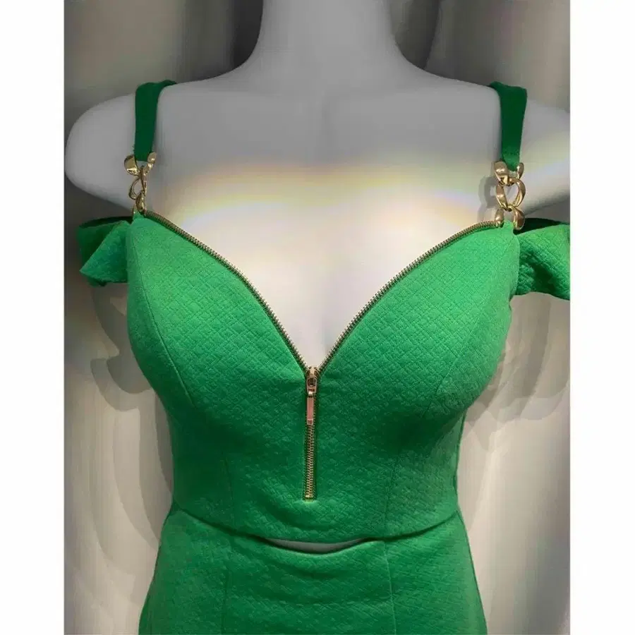 새상품급 그린 오프숄더 미니 드레스