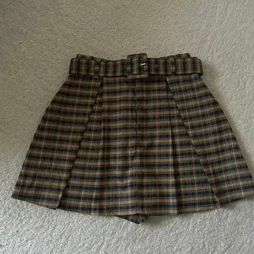 쥬에티 체크 무늬 플리츠 미니 스커트 벨트 포함