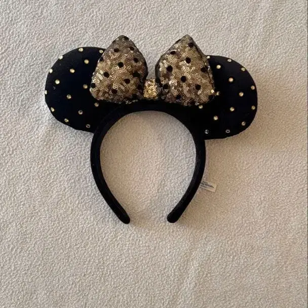 미니 마우스풍 머리띠 블랙 골드 컬러 도트
