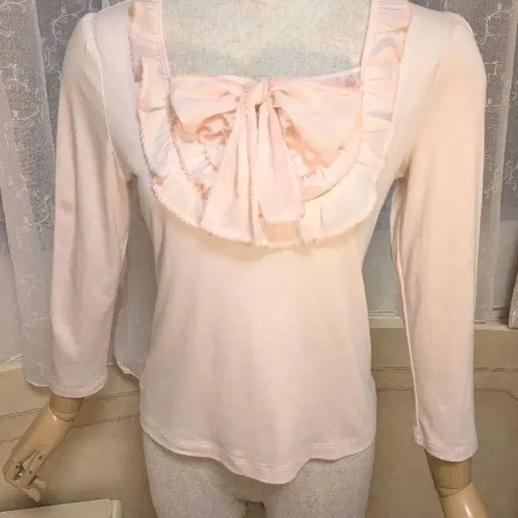 엠즈 그레이시 상의 40 프릴 리본 사쿠라 핑크