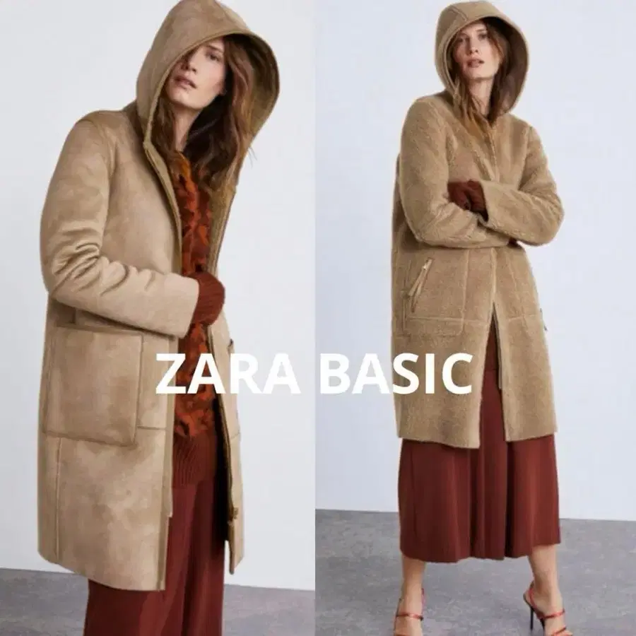 [ 새상품급 ] ZARA*페이크 스웨이드 무스탕 보아 리버서블 롱 코트