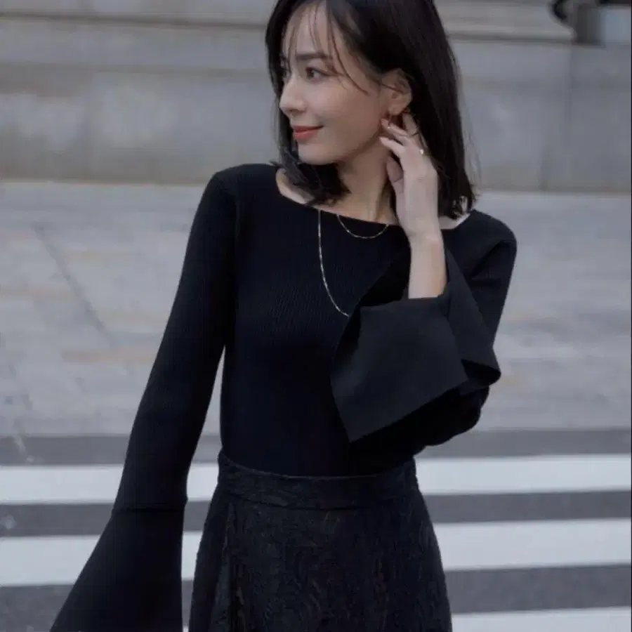 [ 한 번 착용 ] anuans 스퀘어 넥 디테일 슬리브 니트 풀오버