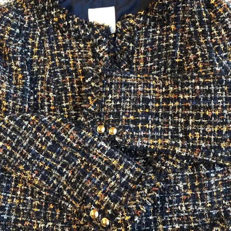 쿠미쿄쿠 네이비 계열 트위드 노카라 자켓