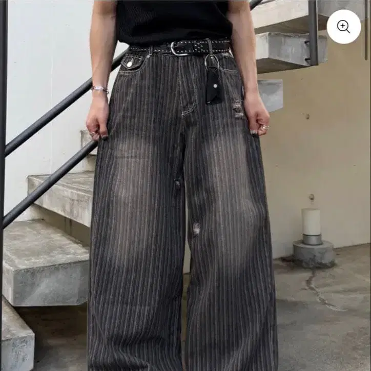 [ 완판템 ] 블랙 스트라이프 와이드 팬츠