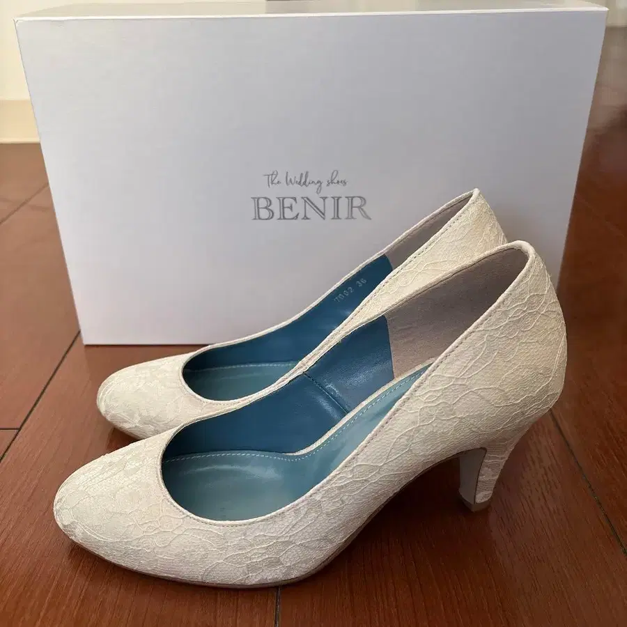 BENIR 화이트 레이스 웨딩 슈즈 7cm 힐 23.5cm (36)