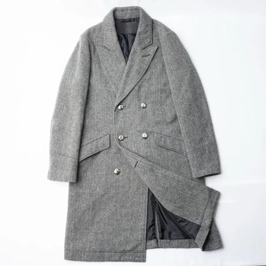GARNI가 제작한, 중후한 느낌과 우아함을 겸비한 더블 브레스트 코트. 고급 울을 고함량으로 사용한 헤링본 원단은 풍부한 질감과 깊이 있는 표현을 만들어내며, 착용하는 것만으로도 세련된 존재감을 발산합니다. 샤프한 피크 라펠과 메탈 버튼이 클래식한 기품을 돋보이게 하여, 스타일링에 확실한 고급스러움을 더합니다. 정성스럽게 제작된 총 안감 사양으로 착용감 또한 부드럽습니다. 성숙한 겨울 의상을 한 단계 격상시키는, 디테일에 신경 쓴 한 벌입니다.