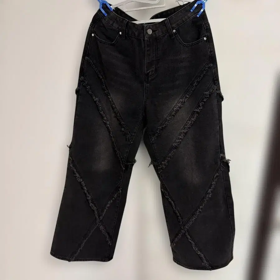프린지 장식 블랙 데님 팬츠