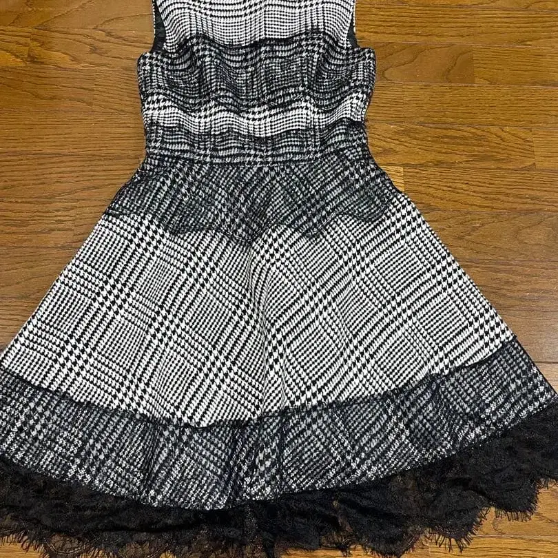 슬리브리스 무릎 기장 원피스 화이트 블랙 체크