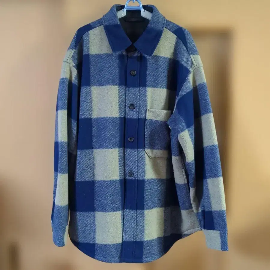 네이비와 베이지 체크 무늬 셔츠 자켓