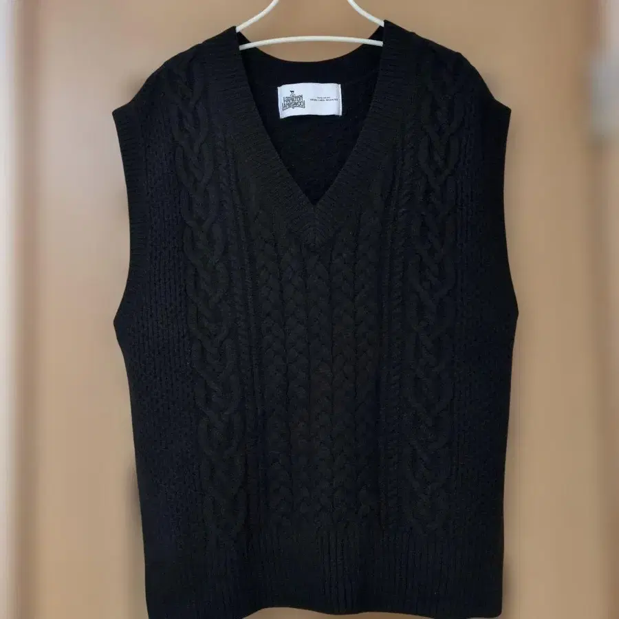 GREEN LABEL RELAXING 블랙 케이블 짜임 V넥 니트 베스트