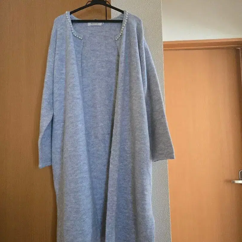 쿠튀르 브로치 펄 장식 롱 가디건 라이트 블루 M 사이즈