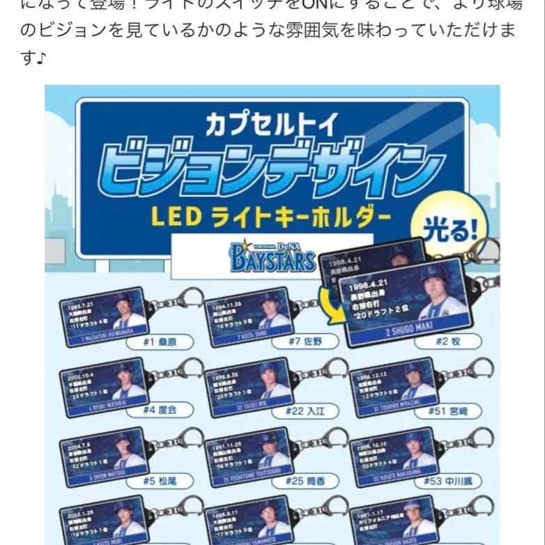 요코하마 DeNA 베이스타즈 사노 게이타 LED 라이트 키링