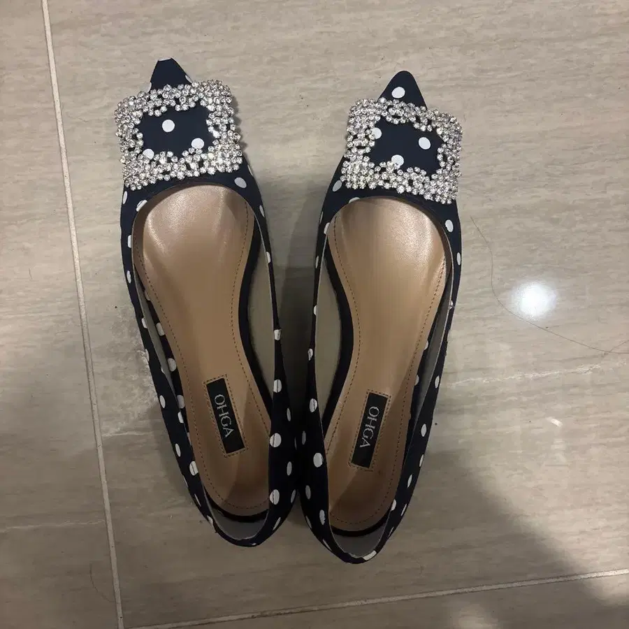 OHGA 네이비 도트 비쥬 플랫슈즈 22cm