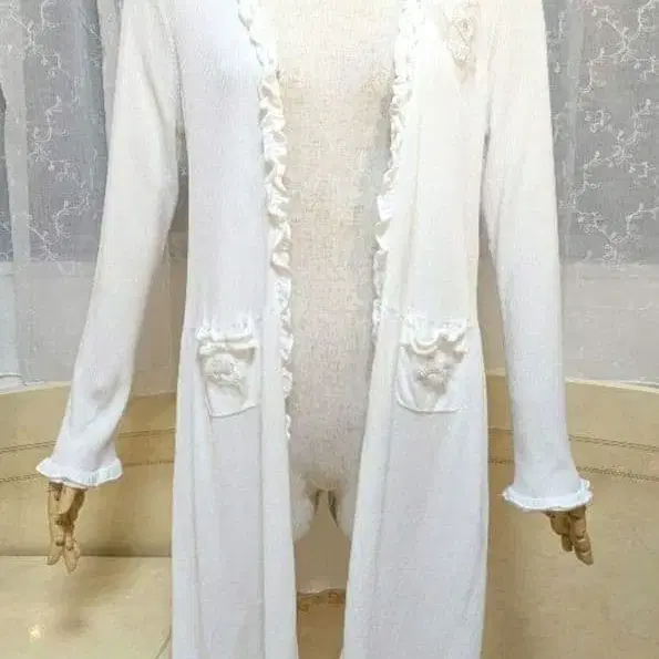 슈퍼 뷰티 롱 가디건 42 레이스 리본 프릴 화이트