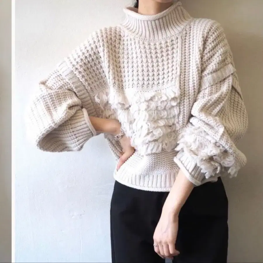 프릴 장식 블루 니트 스웨터 F 사이즈