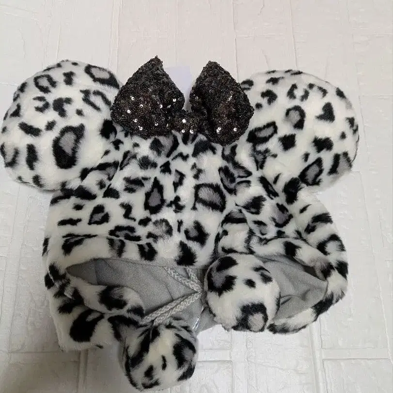 디즈니 미니 팬캡 화이트 블랙 레오파드 무늬