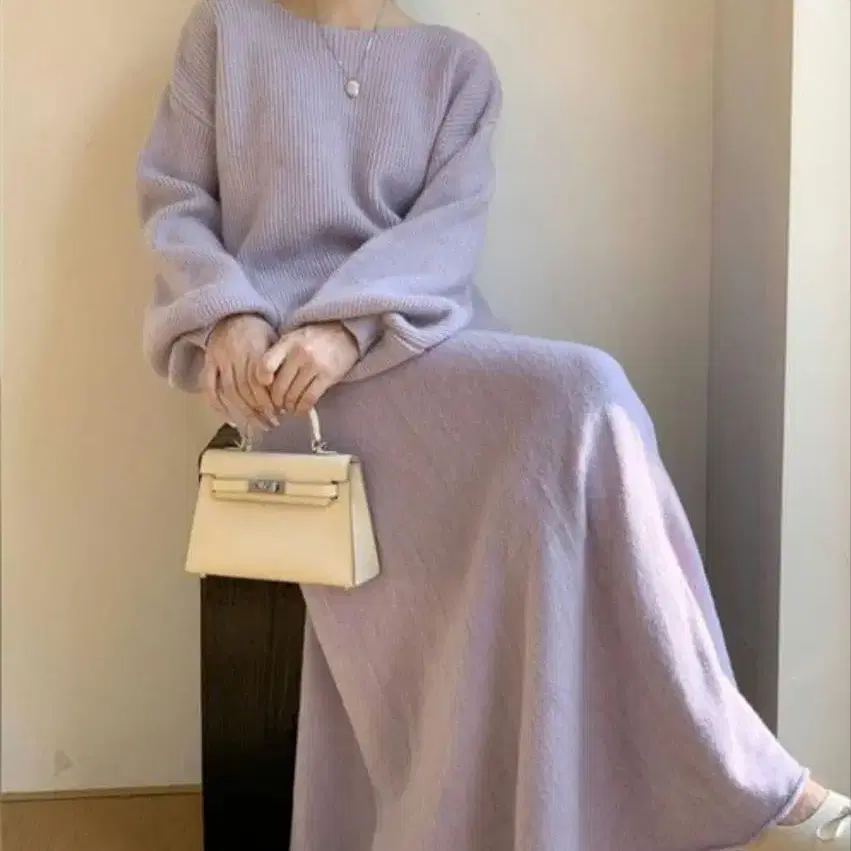 셋업 보트넥 드롭 숄더 니트 & 니트 롱 스커트
