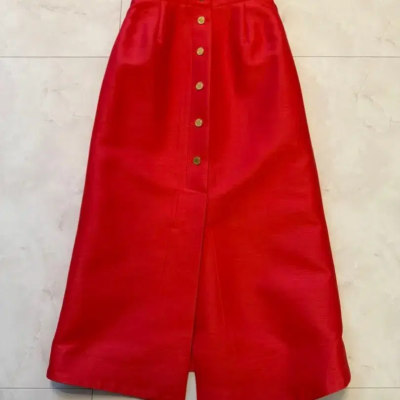 Loulou Willoughby 금 배지 부착 빨간색 타이트 스커트