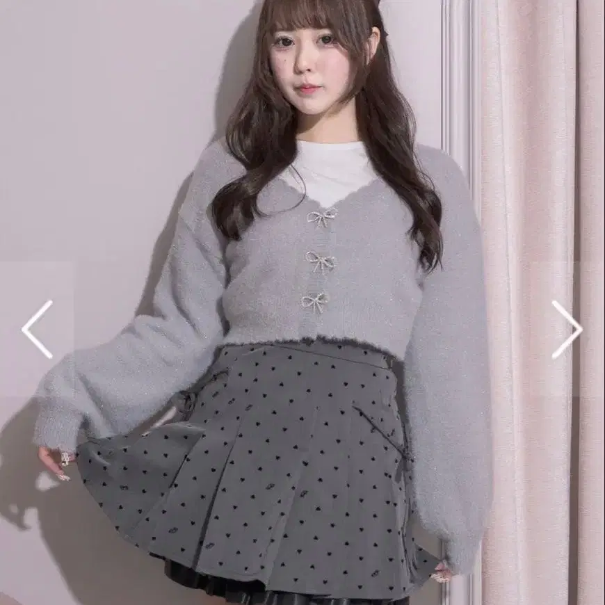 [ 새상품 ] pium 리본 비쥬 라메 페더 가디건 블루 그레이