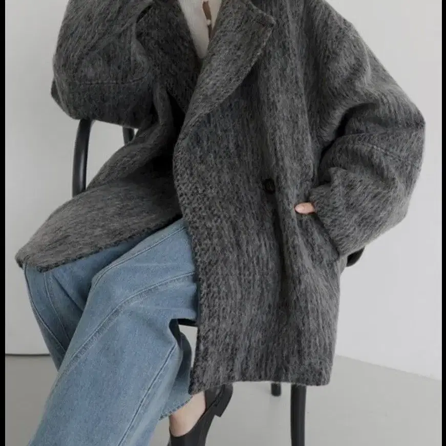 샘플 미사용급 BOWTE 더블 샤기 키드 모헤어 숏코트