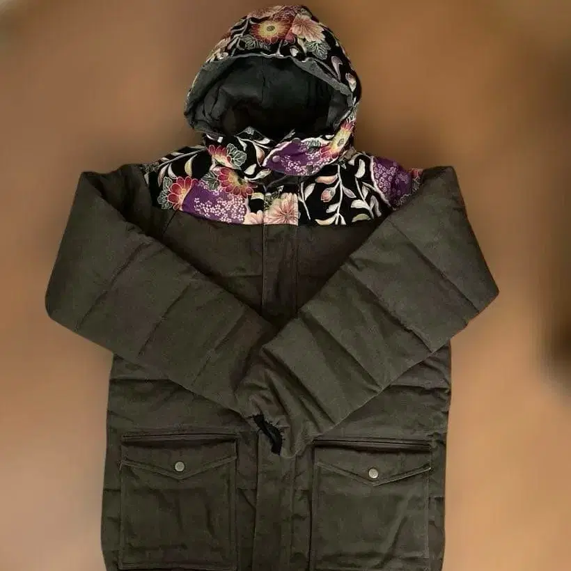 도둑 일기 일본풍 패턴 후드 부착 다운 자켓