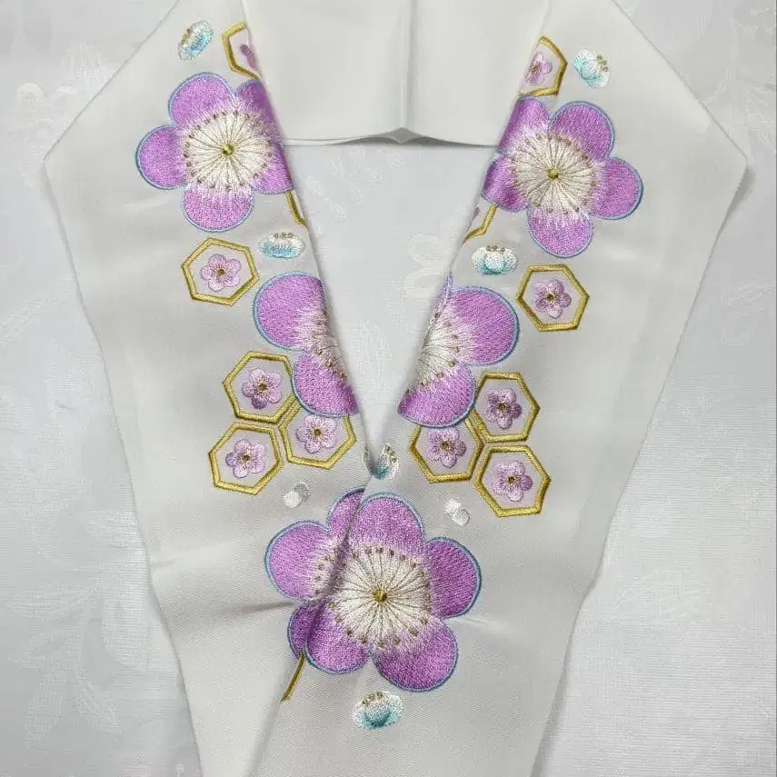 미사용 t-044 장식용 깃 자수 후리소데 성인식 귀갑 문양 매화