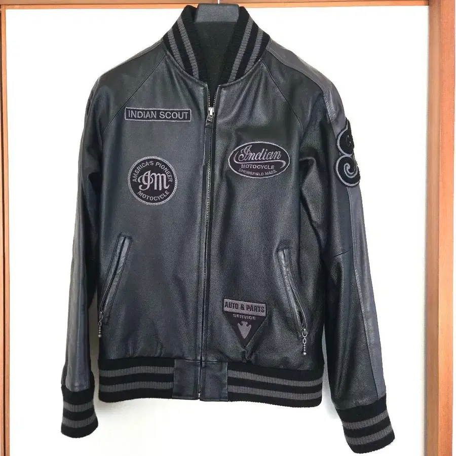 Indian Motorcycle 바시티 자켓 가죽 블랙 와펜 M