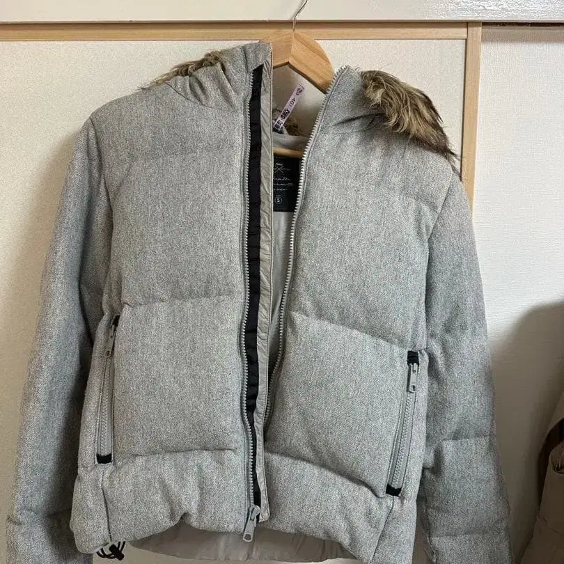 후드에는 **인조 모피 (탈부착 가능)**가 달려 있습니다.