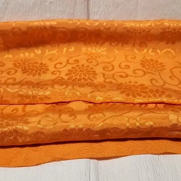 미사용 보관품 순수 실크 오비 장식 천 오렌지 국화 당초 문양