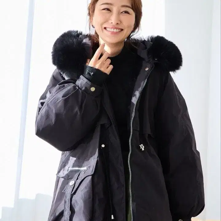 Myu 럭셔리 퍼 울트라 웜 충전솜 코트 블랙