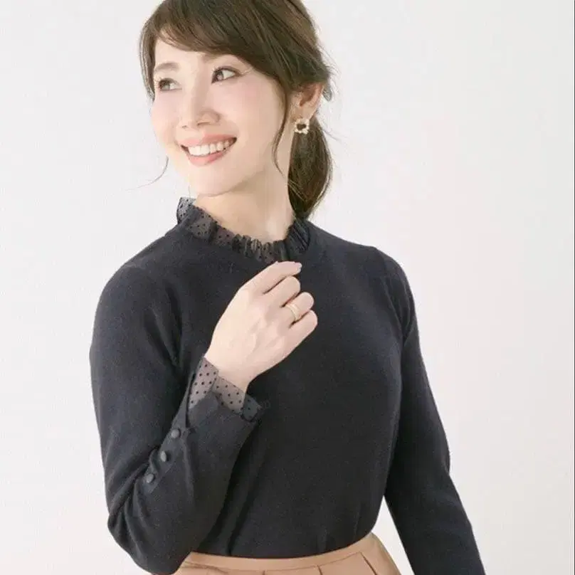 도트 튤 프릴 넥 니트 Liala x PG