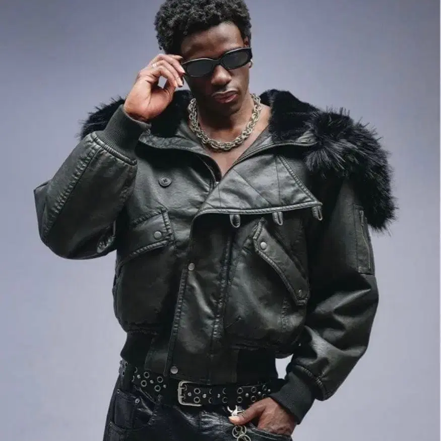 언더한크 블랙 가죽 MA-1 자켓 퍼 포함