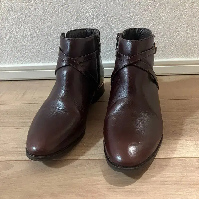 다크 브라운 크로스 스트랩 부티