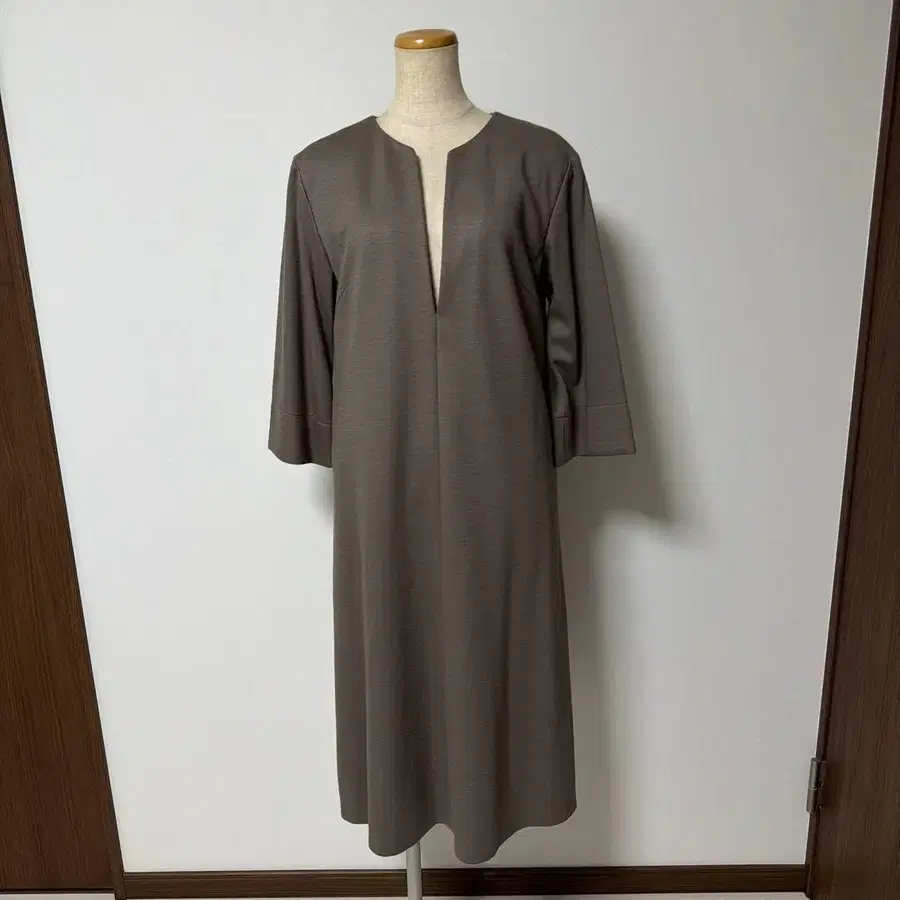 • A4468 언타이틀 무릎 기장 원피스 7부 소매 울 베이지 2