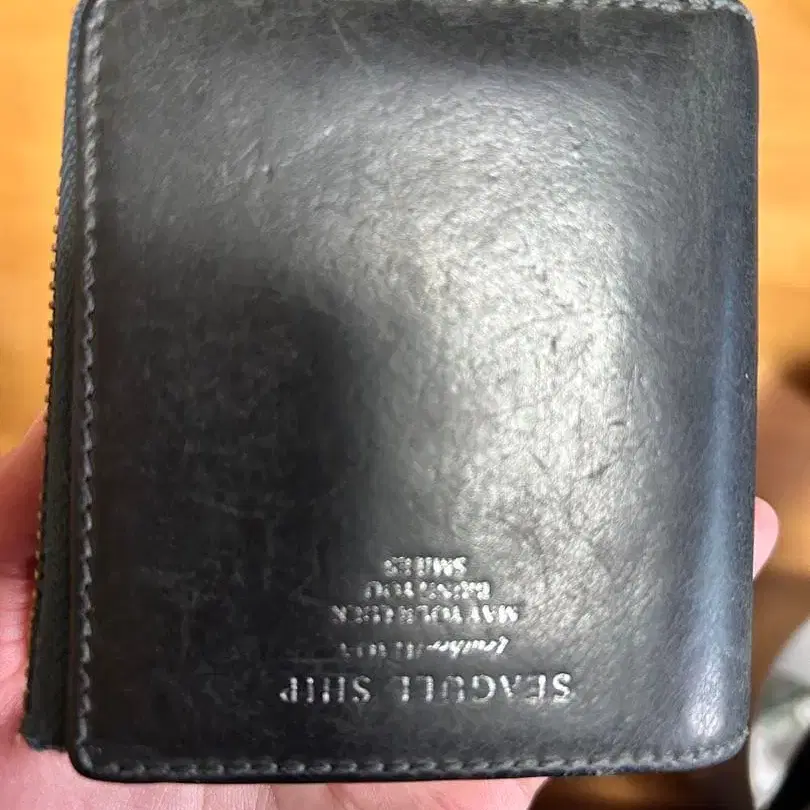 Seagull Ship 접이식 지갑 블랙 천연 가죽