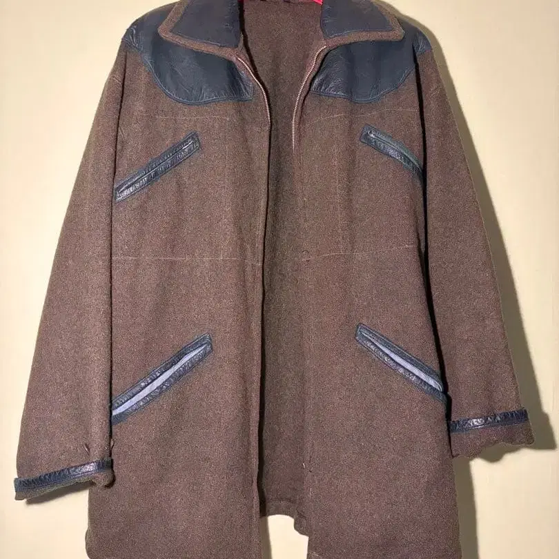 울 자켓 그린 가죽 디테일