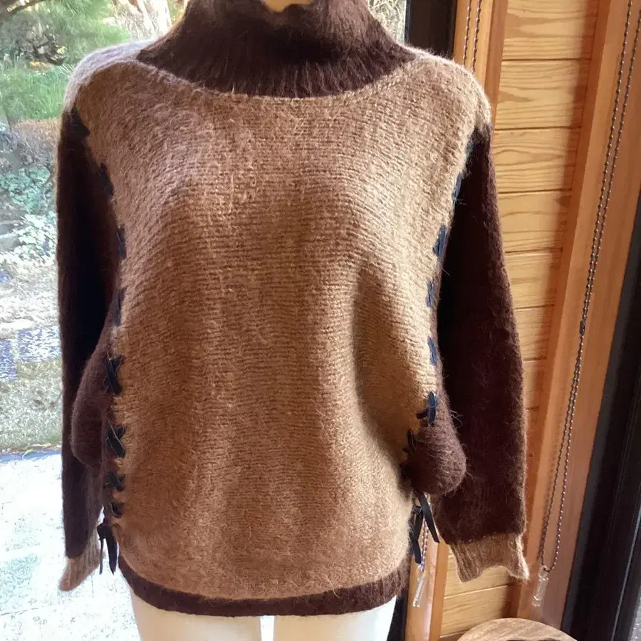 알파카 100 브라운 터틀넥 니트 스웨터 빈티지