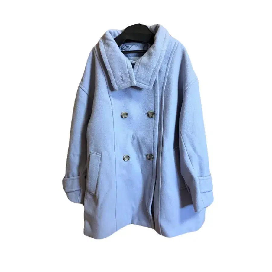라이트 블루 더블 브레스트 체스터 코트