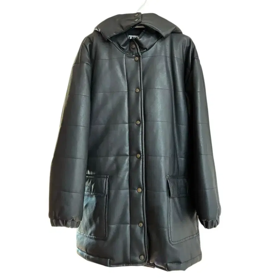 ALPHA 가죽 다운풍 패딩 자켓 후드 부착 블랙 밀리터리 방한 겨울
